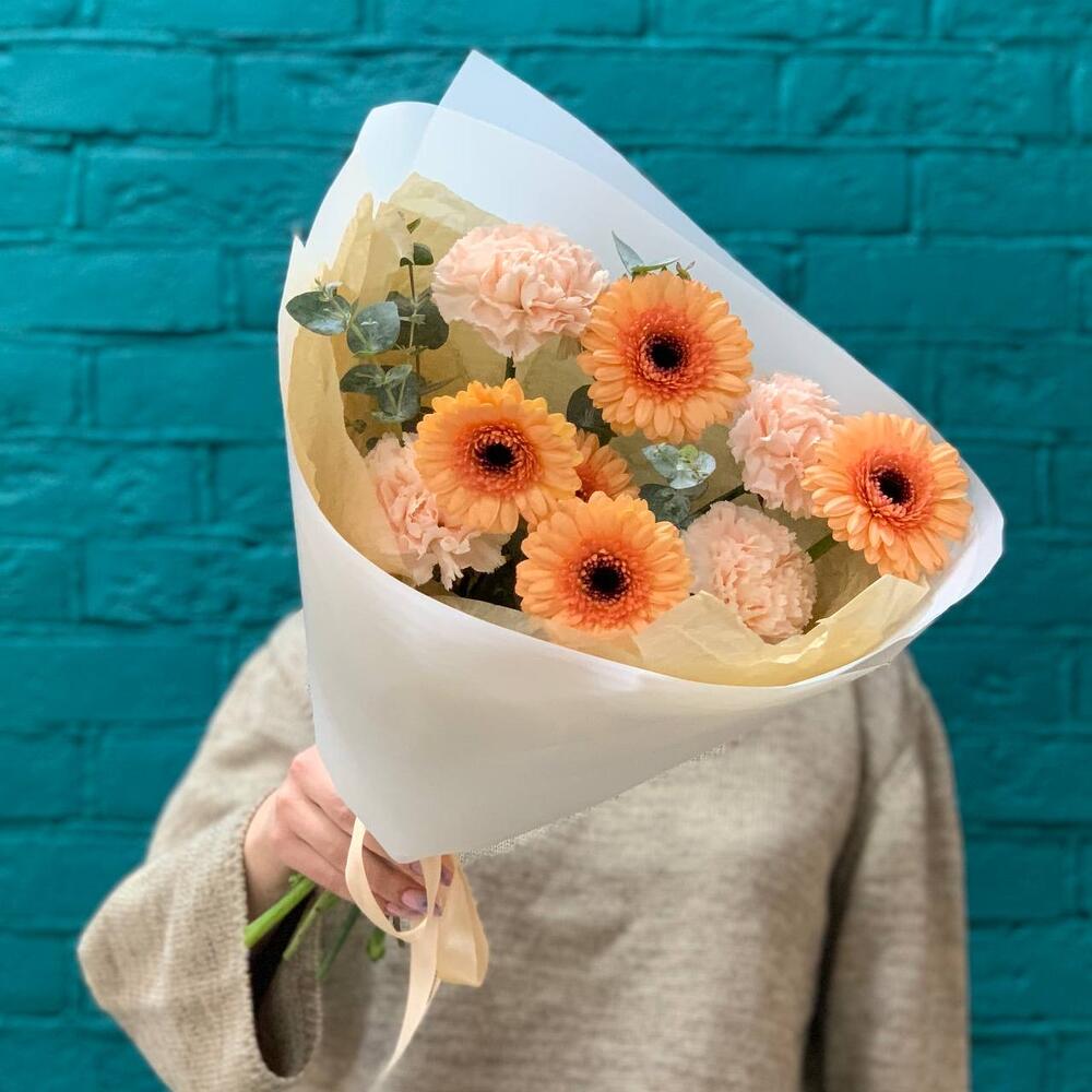 Букет из герберы и розовой гвоздики (диантусов) в Мценске
